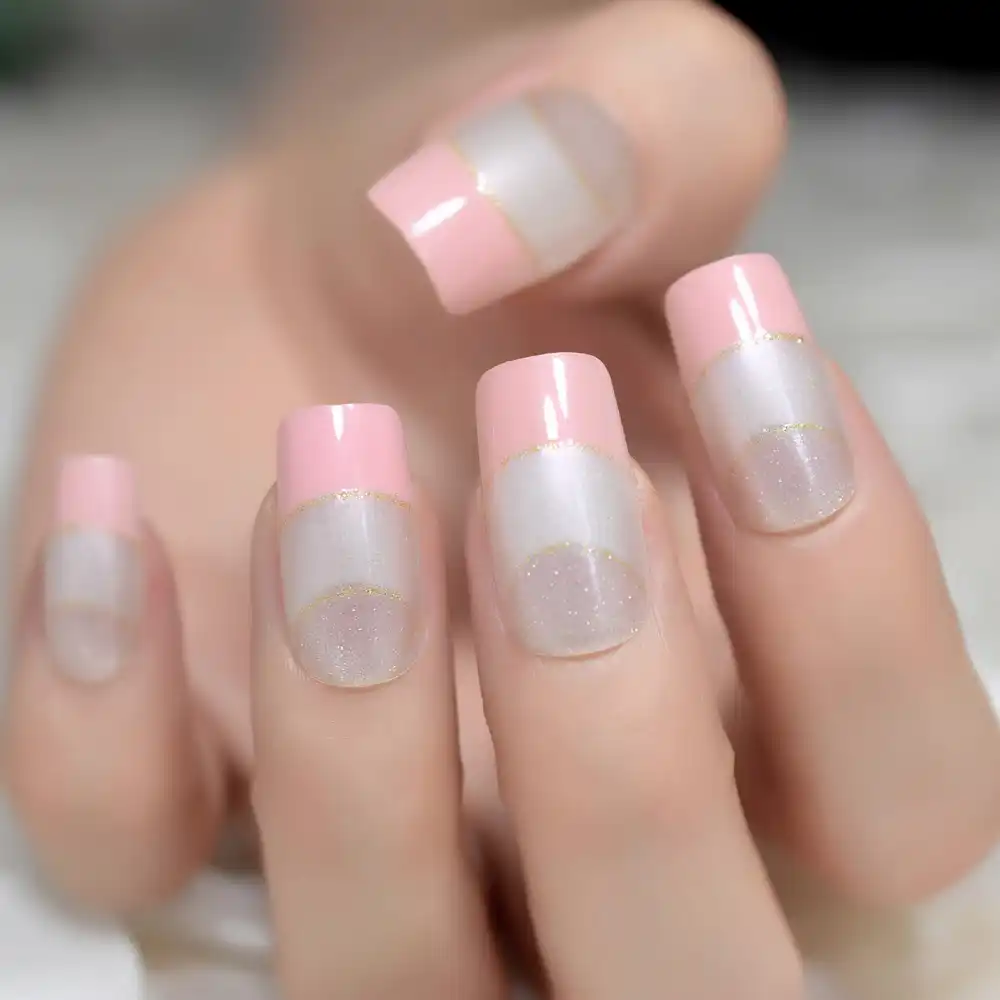 24 Pearl Ombre Press On nails Baby Boomer French manicure Fade white tip Medium square pink kit glue SureThingss. Clean Nails with polish remover and wash hands thoroughly with soap. Products Brand Used Clear Acrylic - Odyssey Nail Systems Nude Acrylic - Odyssey Nail SystemsWhite Acrylic - Odyssey Nail SystemsDont Know The NameNumbe.