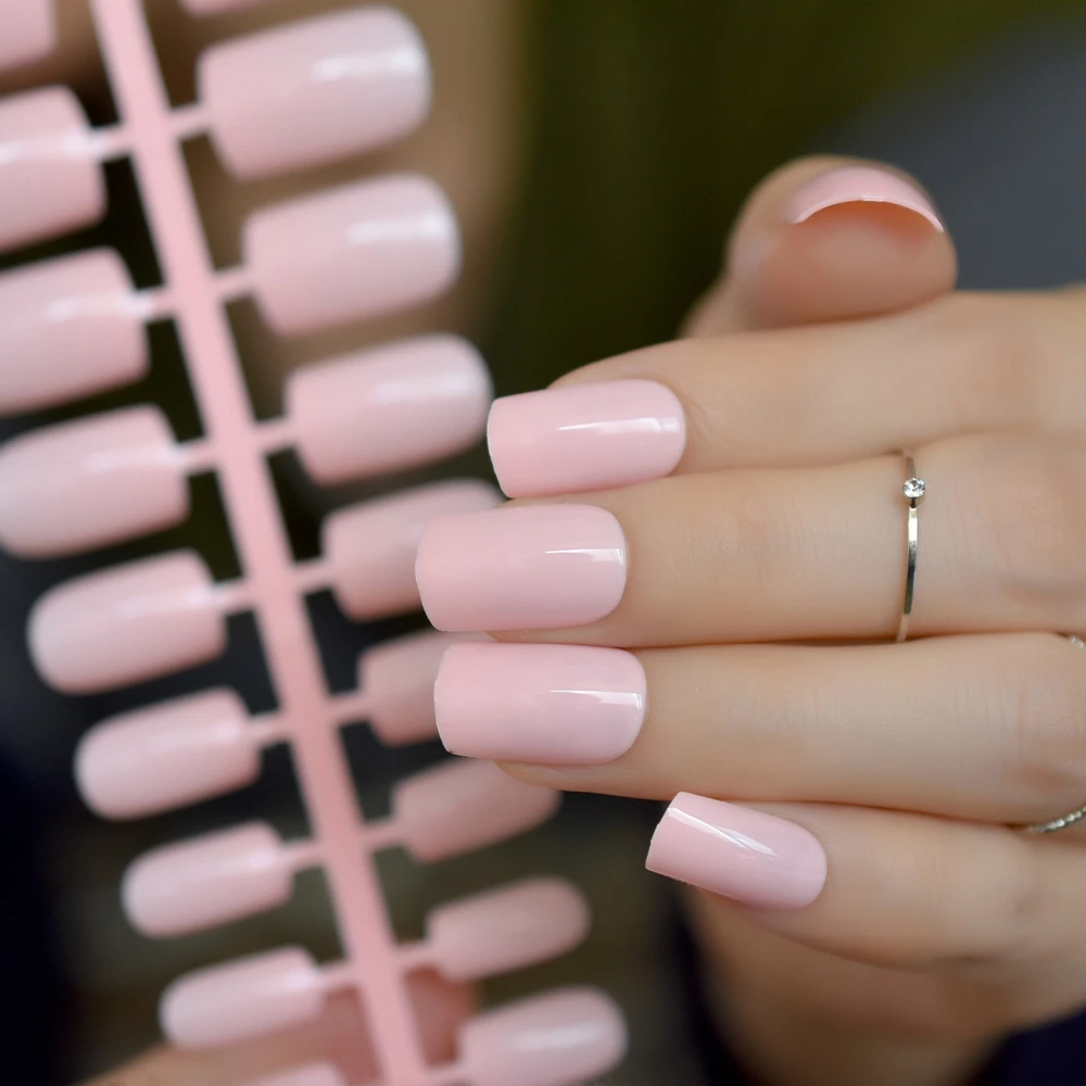 Buy Online Misty Rose Fake Nails Light Nude Pink Square False Nails Uv Effect Faux Ongles Nail Art Manicure Tool Daily Wear Full Tips Alitools