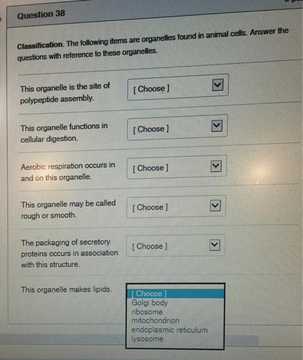 Solved The Following Items Are Organelles Found In Animal Chegg Com