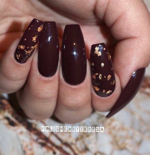 Madame Burgundy And Gold Foil Press On Nails Glue On Etsy