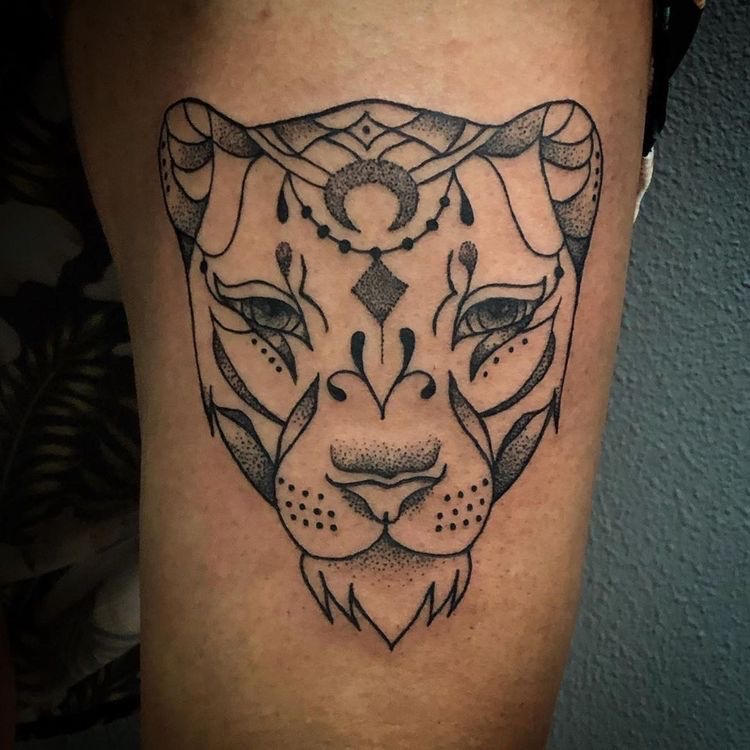 Capable and independent shes an attractive feline with strong muscular shoulders and an unmistakable enduring beauty. Most lion tattoos have a very masculine touch to it. The ideal place to show off this tattoo.