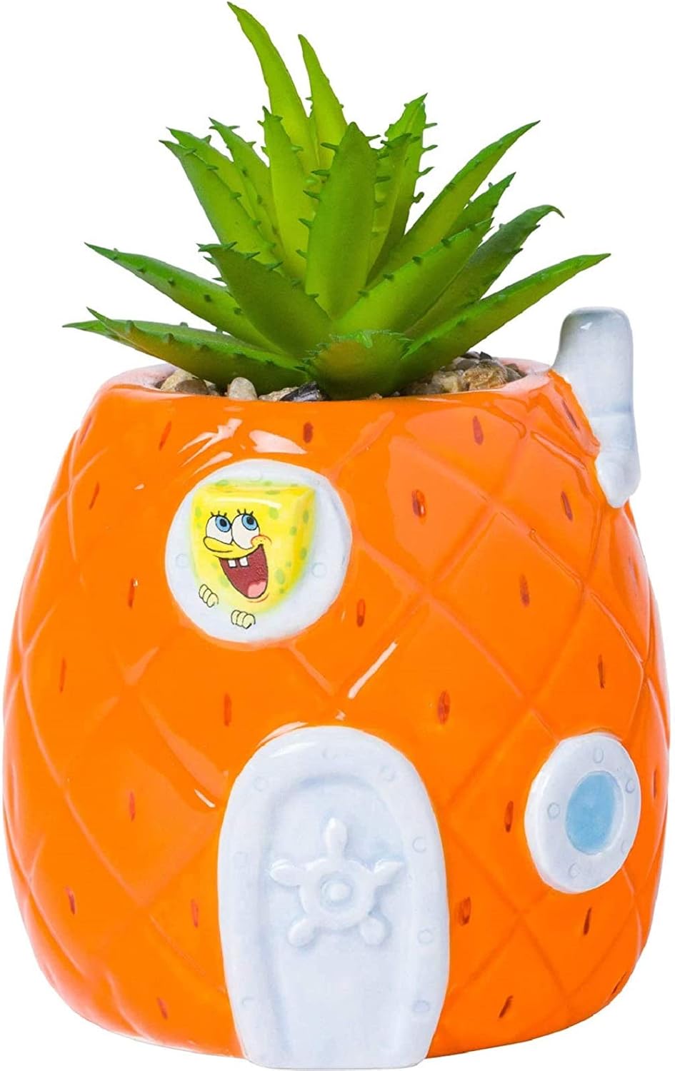 Amazon Com Silver Buffalo Spongebob Pineapple House Window Mini Ceramic Planter 3 Inch By 4 5 Inch Orange Home Kitchen