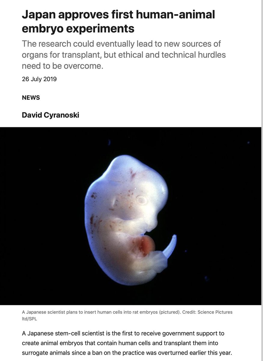 Eric Topol On Twitter Human Animal Hybrid Embryos To Grow Organs For Transplantation Https T Co Hvagtdizuq By Cyranowski Naturenews The Research Is Going Forward In Japan And Will Certainly Stir Debate Among Bioethicists Naturenews Https T