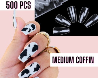500pcs Coffin Nails Tips Clear Full Cover 10 Sizes Makartt