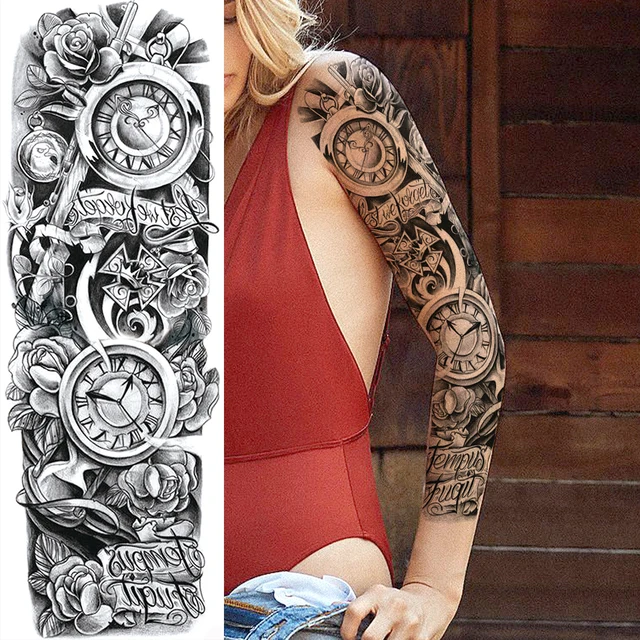 Large Arm Sleeve Tattoo Pyramid Egyptian Leopard Waterproof Temporary Tatto Sticker Lion Owl Body Art Full Fake Tatoo Women Men Temporary Tattoos Aliexpress