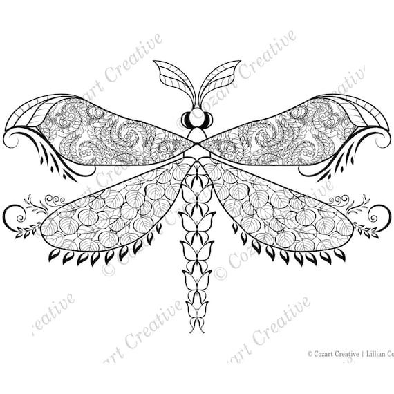 Adult Coloring Page Dragonfly Illustration Instant Download Etsy