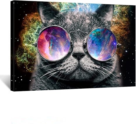 Amazon Com Creative Art Canvas Prints Wall Art Space Glasses Cat Funny Art Poster Print On Canvas Modern Wall Decor Home Decoration Stretched Canvas Giclee Print Ready To Hang Space Posters