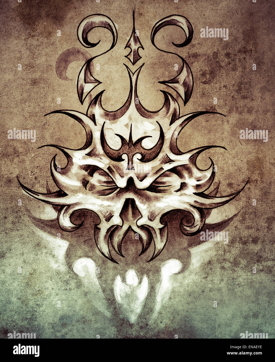 Sketch Of Tattoo Art Monster Design With Tribal Illustrations On Vintage Paper Handmade Illustration Canstock