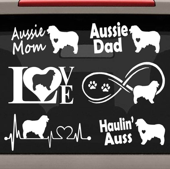 6 Australian Shepherd Aussie Mom Dad Heartbeat Infinity Decal Sticker Set E1081 Collectibles Newsbreathe Animals