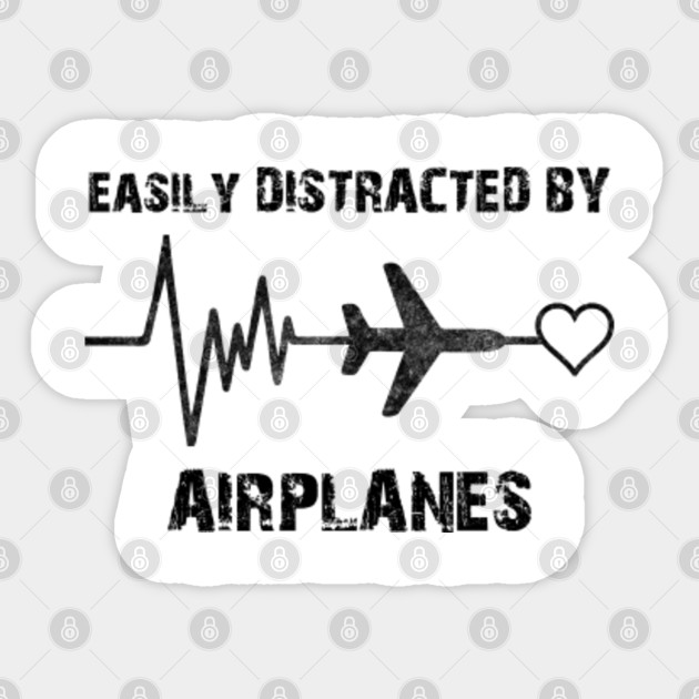 Easily Distracted By Airplanes Funny Heartbeat Pilot Flying Gift Easily Distracted By Airplanes Sticker Teepublic Au