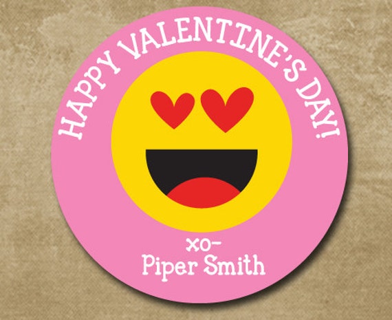 Emoji Valentine Heart Eyes Emoji Personalized Kids Valentine Etsy
