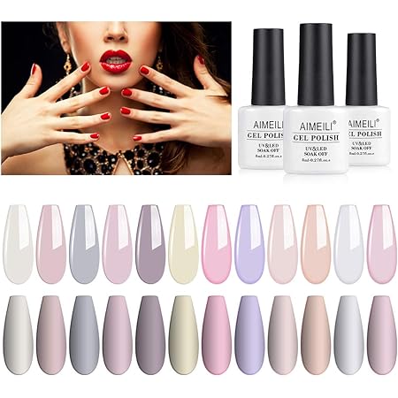 Amazon Com Aimeili Valentine S Day Kit Clear Color Pink Nude White Soak Off Uv Led Gel Nail Polish Set Of 12pcs X 8ml Kit Set 3 Beauty