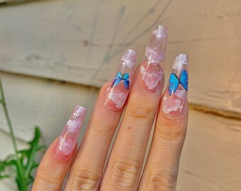 There are 867 blue butterfly nails short for sale on Etsy and they cost 1648 on average. Feb 18 2020 - the clear nails have a light glitter and custom butterflies.