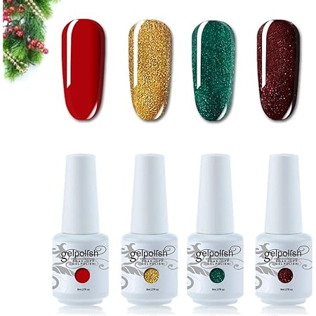 Amazon Com Vishine Soak Off Uv Led Gel Polish Christmas Collection Glitter Sparkle Red Gold Green With Bright Red Gel Nail Polish Color Set Of 4pcs 8ml Nail Art Beauty