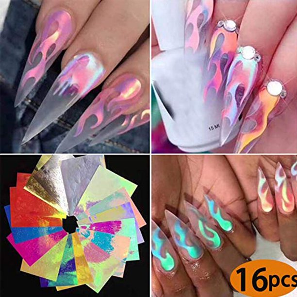 Halloween Stickers Decorations Nail Stickers For Women Kids Holographic Fire Flame Hollow Manicure 16pcs Long Lasting Diy Adhesive Art Sticker Walmart Com Walmart Com