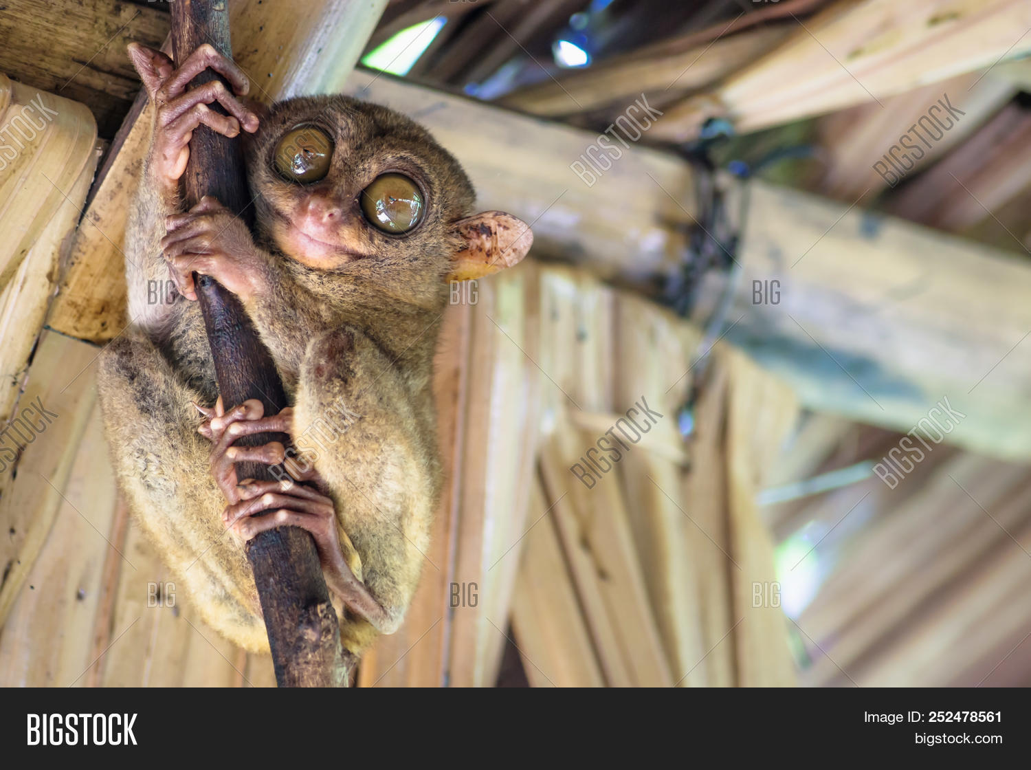 Tarsier With Big Eyes On A Branch In A Hut In Bohol Philippines Asia Image Stock Photo 252478561