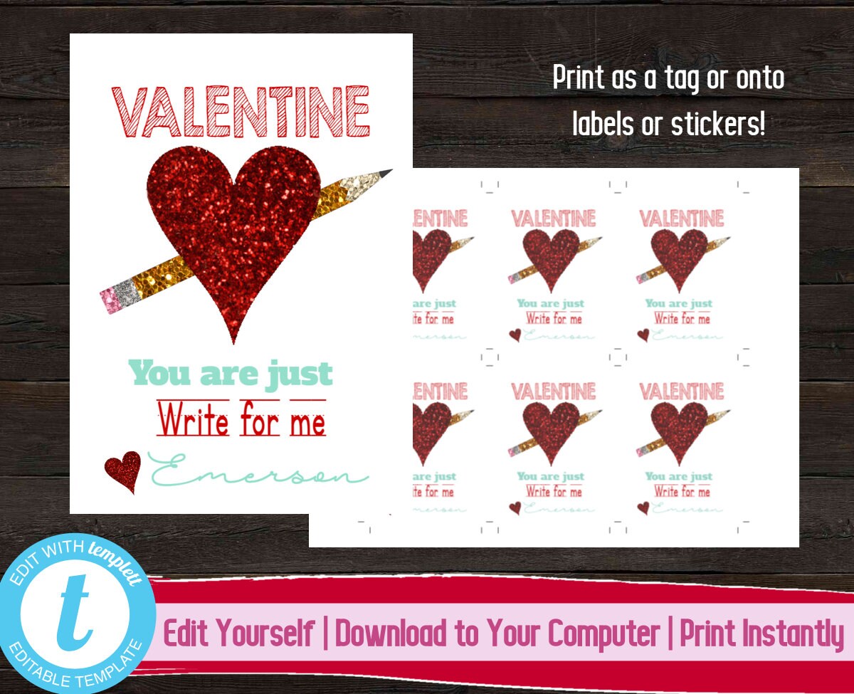 Printable Valentine S Day Tag Glitter Valentines Day Stickers Pencil Valentine Label Kids Valentines You Are Just