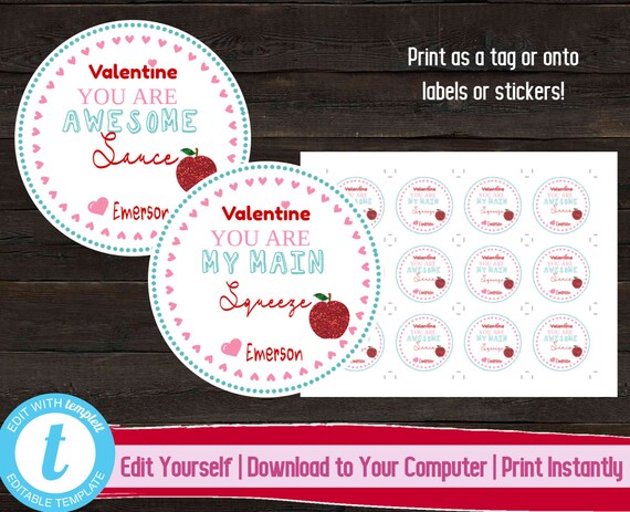 Applesauce Valentine S Day Label Printable Valentine Etsy