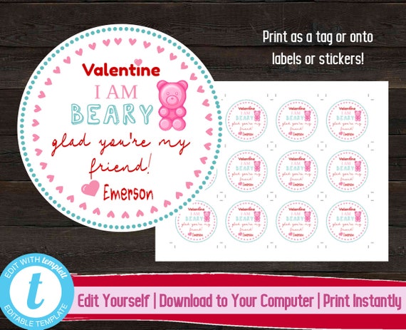 Printable Valentine S Day Gift Tags Bear Valentines Day Etsy