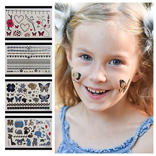 Twink Designs Temporary Tattoos For Girls 92 Tattoos On 4 Sheets Best For Party Favors Birthday Party Supplies Goodie Bags And Stocking Stuffers 4 Pages Of Childrens Metallic Temporary Tattoo Walmart Com Walmart Com