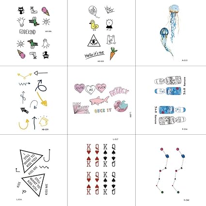 Temporary Tattoo For Girls Boys Teens Tattoo Sticker Cute Body Stickers 9 Pcs And Easy To Use Amazon Co Uk Beauty