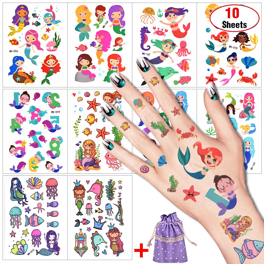 Temporary Tattoos For Kids Mermaid Temporary Glitter Tattoo Fake Waterproof Paper Stickers Kit Easy To Apply Remove For Children Girls Boys Birthday Decorations Supplies Party Bag Filler 10 Sheets Buy Online In Georgia At Georgia Desertcart Com