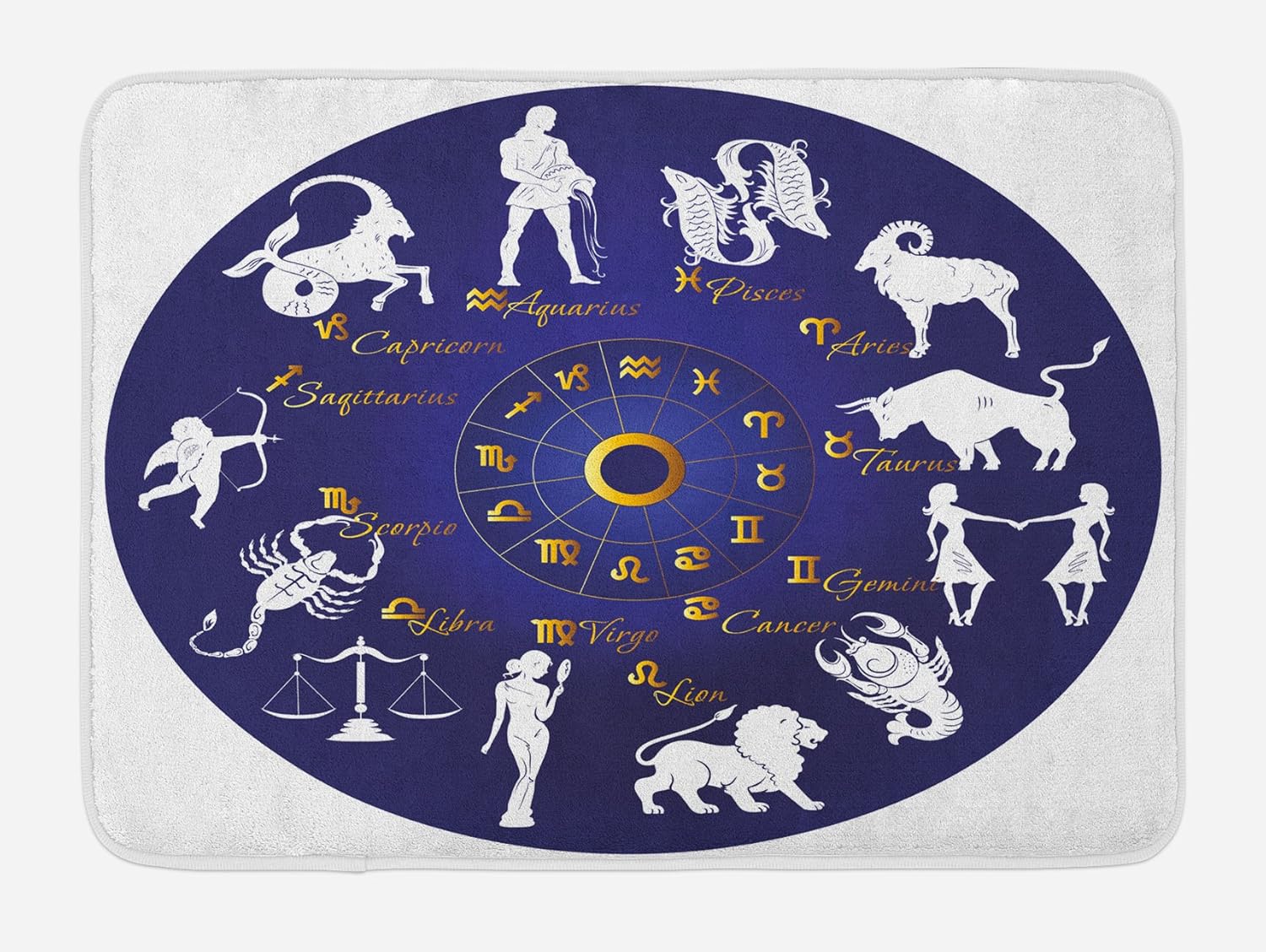 Amazon Com Lunarable Zodiac Bath Mat Wheel Of Zodiac Map With Horoscope Signs Vintage Effects Celestial Scenery Print Plush Bathroom Decor Mat With Non Slip Backing 29 5 X 17 5 Blue White Kitchen