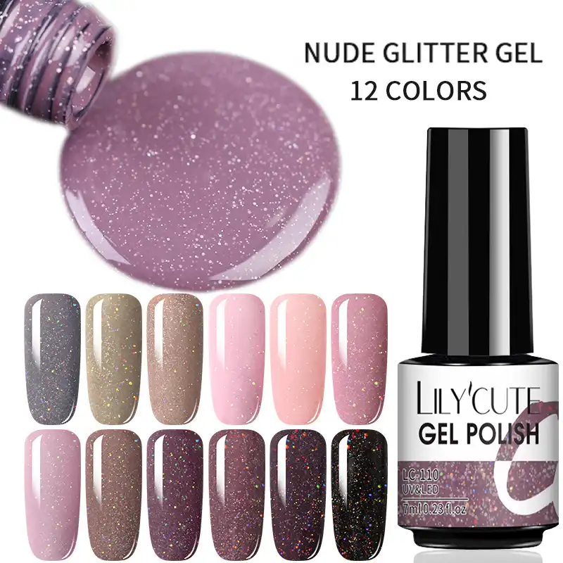 Lilycute 5ml Nude Glitter Gel Nail Polish Holographic Rose Gold Sequins Nail Gel Soak Off Nail Art Uv Gel Polish Nana S Corner Beauty Cosmetic