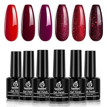Amazon Com Beetles Gel Nail Polish Set Poinsettia Kit Dark Red Burgundy Red Glitter Gel Polish Soak Off Uv Nail Lamp Led Cured 7 3ml Each Bottle For Nail Art Design For Christmas