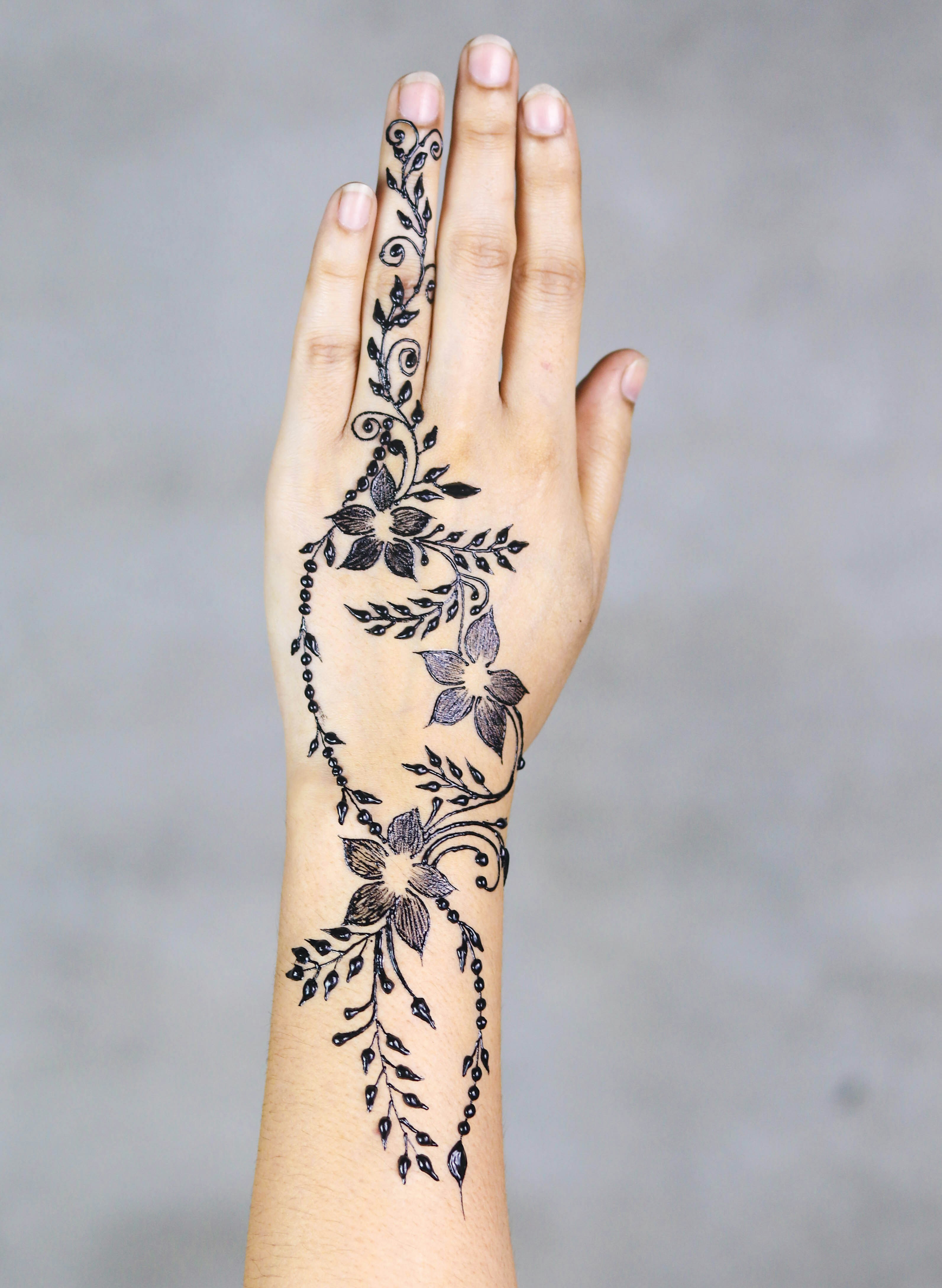 The most popular placements for henna tattoos are hands fingers wrists and arms because these tattoos mostly have a traditional design which is applied on the hands and feet of brides in some Asian countries. Henna Flower Tattoo On Side Hand For Women. Katie Waissel Side Hand Have Faith Tattoo.