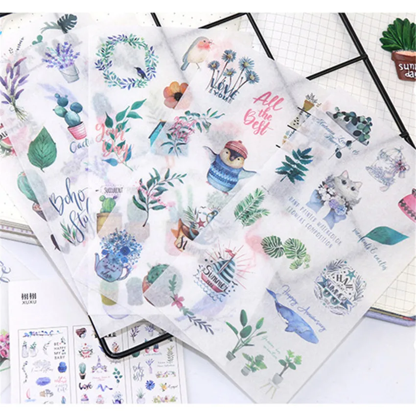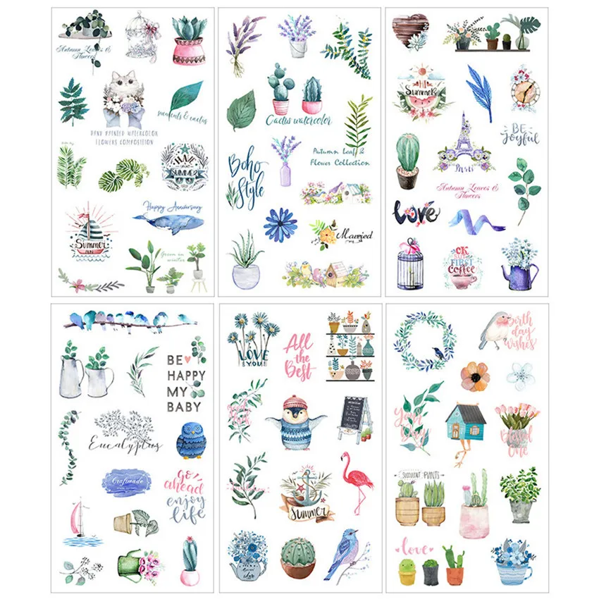 6 Sheet Flamingo Plant Flower Aesthetic Stickers Scrapbooking Northern Europe Style Adhesive Sticker Set Dairy Photo Ablums 302 Stickers Aliexpress
