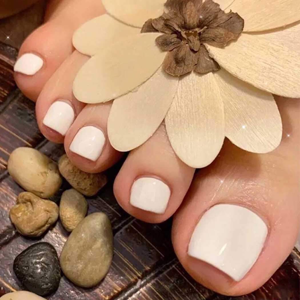 Campsis Matte Press On Toe Nails Square White Fake Toenails Acrylic Fu Ninthavenue Europe
