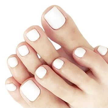 Amazon Com White Fake Toe Nail Press On Toenails Tips For Women Discountone Pure Color Short Square Full Cover False Nails With Toes Acrylic Art Tips 24pcs Beauty