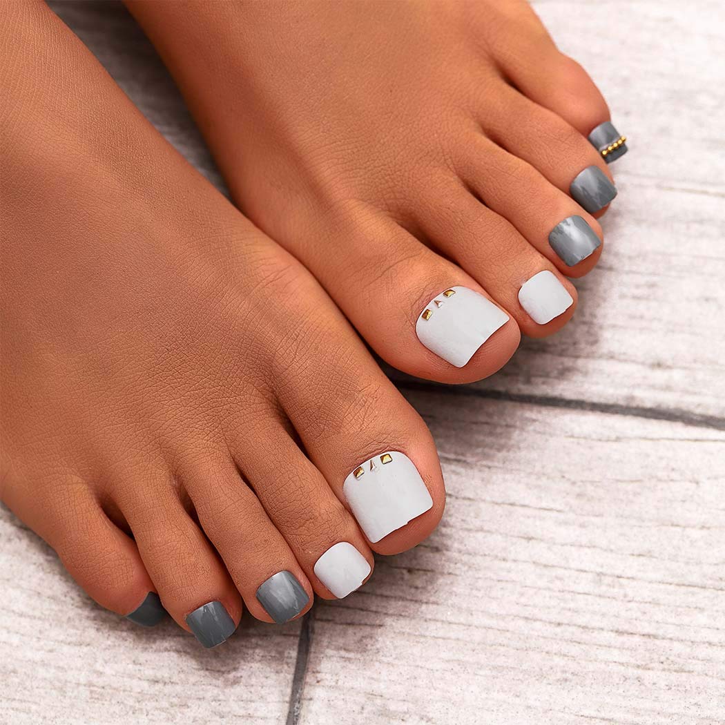 Amazon Com Campsis 24pcs Glossy Fake Toenails Grey Sparkly Short Full Cover Fake Nail Acrylic Fashion Simple Fake Toe Nails Art Tips For Women And Girls Beauty