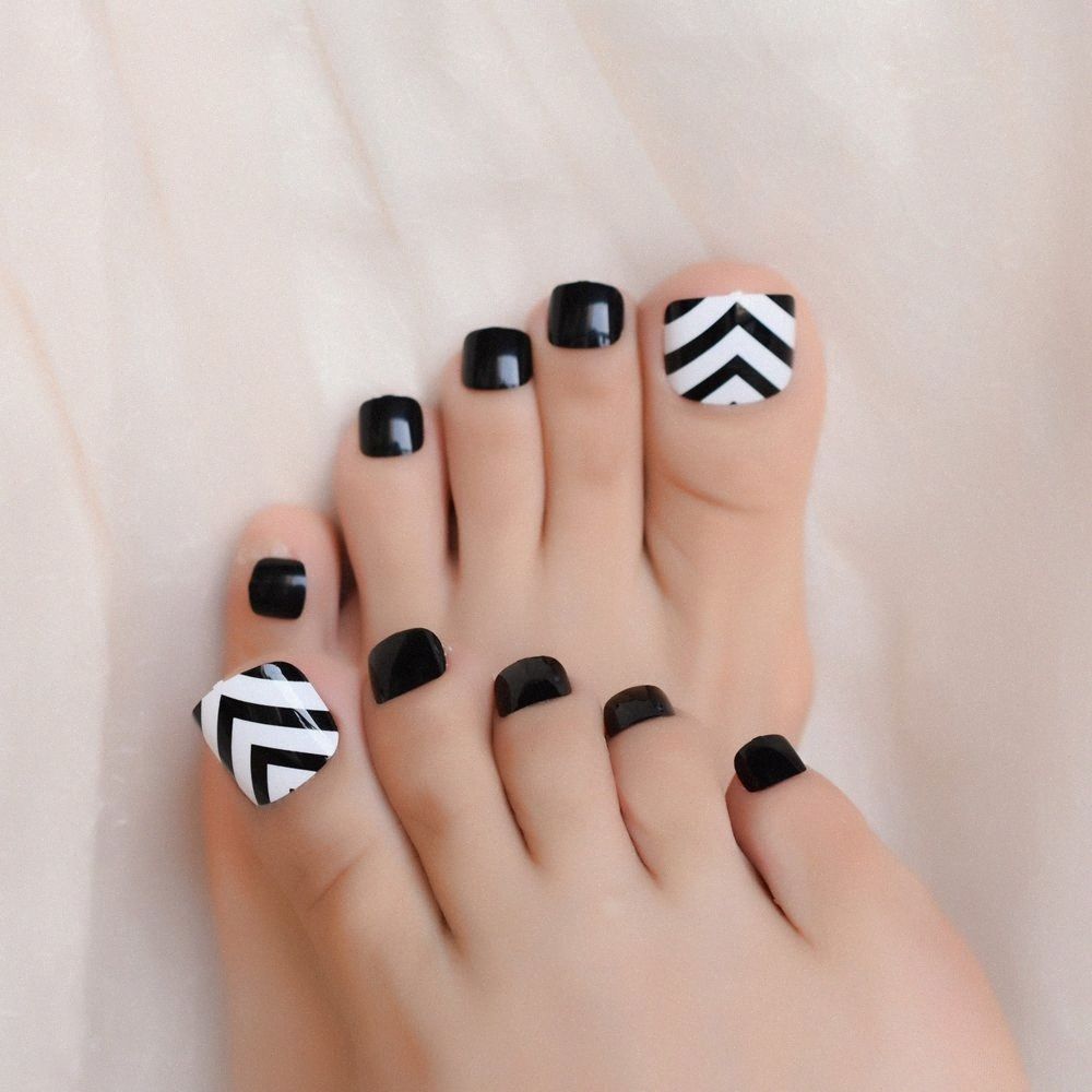 Classic Mix Black White Artificial Acrylic Toe False Nails Tips Foot Fake Nails Manicure Art Decoration Faux Ongles Ryqh From Chanyankui 27 17 Dhgate Com
