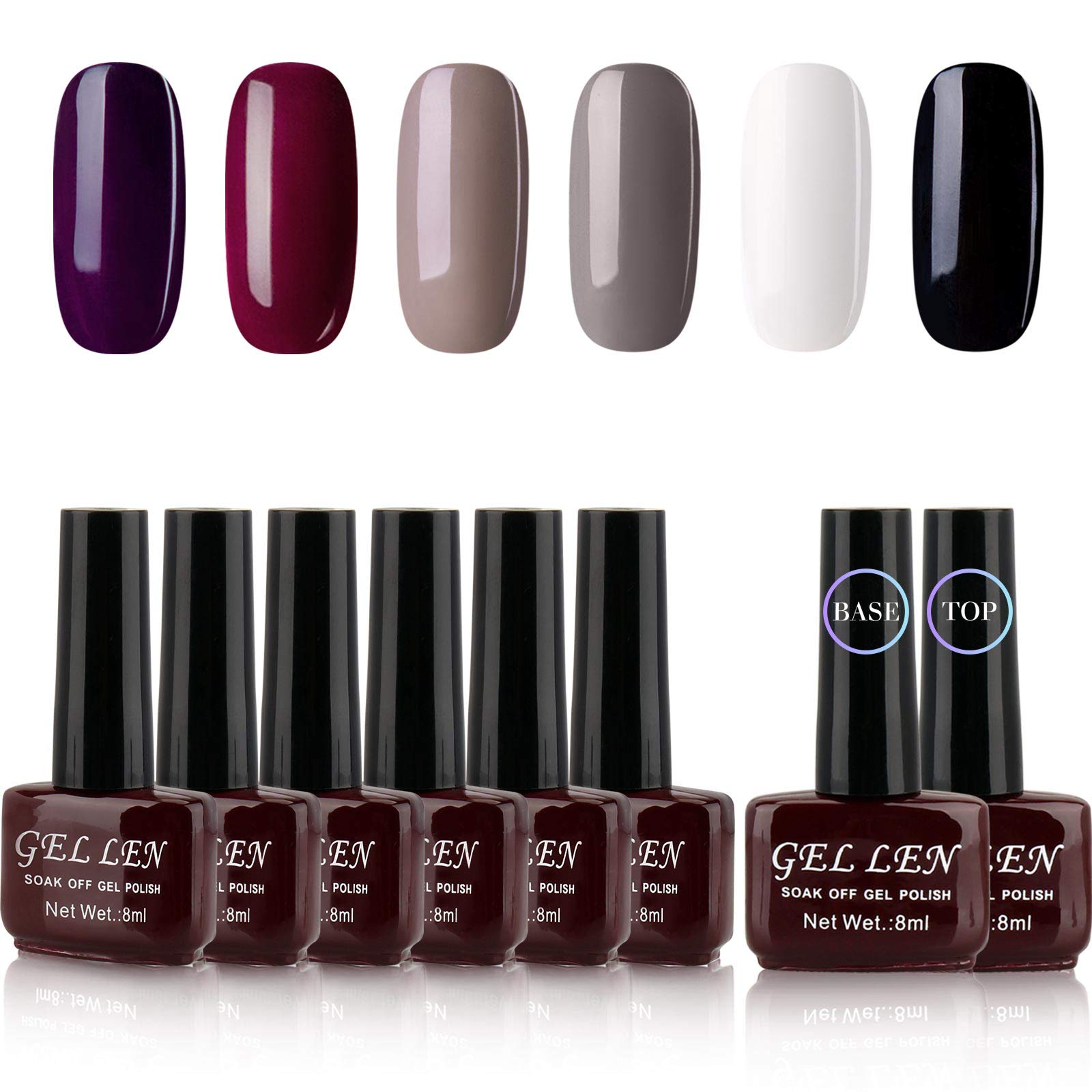 Gellen Gel Nail Polish Kit 6 Colors With Base Top Coat Classic Elegance Series Popular Dark Shade Nail Art Colors White Black Grays Wine Purple Home Gel Starter Manicure Set Buy
