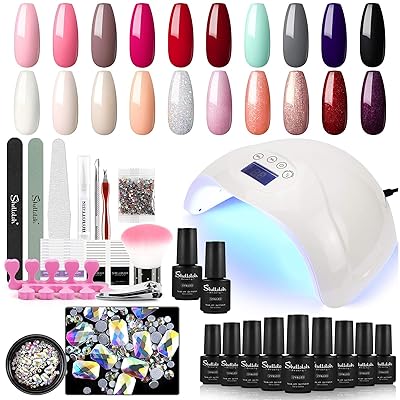 Amazon Com Gel Nail Polish Kit Elfeland 10 Colors Home Diy Gel Polish Starter Kit With Light 48w Led Nail Lamp Gel Base Top Coat Nail Art Decors Soak Off Led Gel