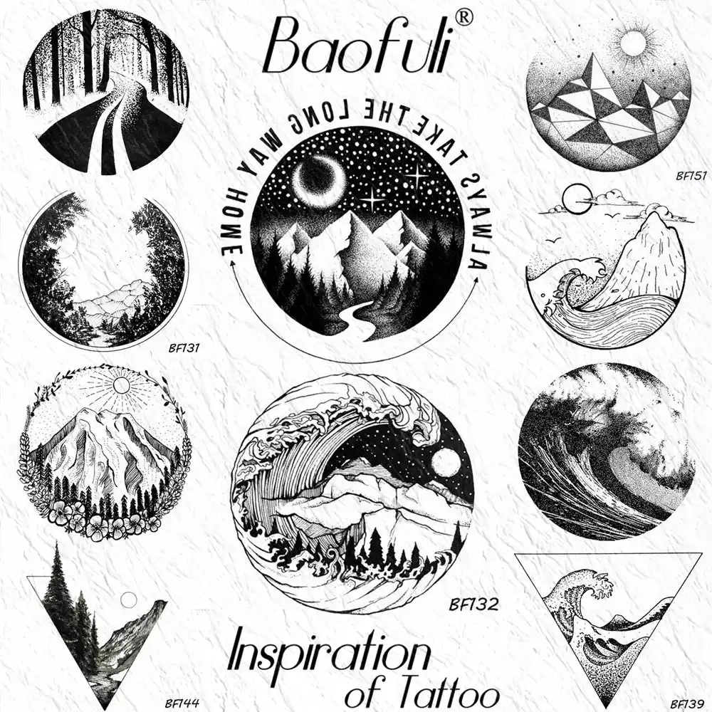 Sea Wave Mountain Moon Star Fun Temporary Tattoo Sticker Forest Round Custom Fake Tattoos Diy Waterproof Body Arm Black Tatoo Temporary Tattoos Aliexpress