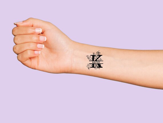 2 Monogram Custom Temporary Tattoos With Split Initial And Etsy
