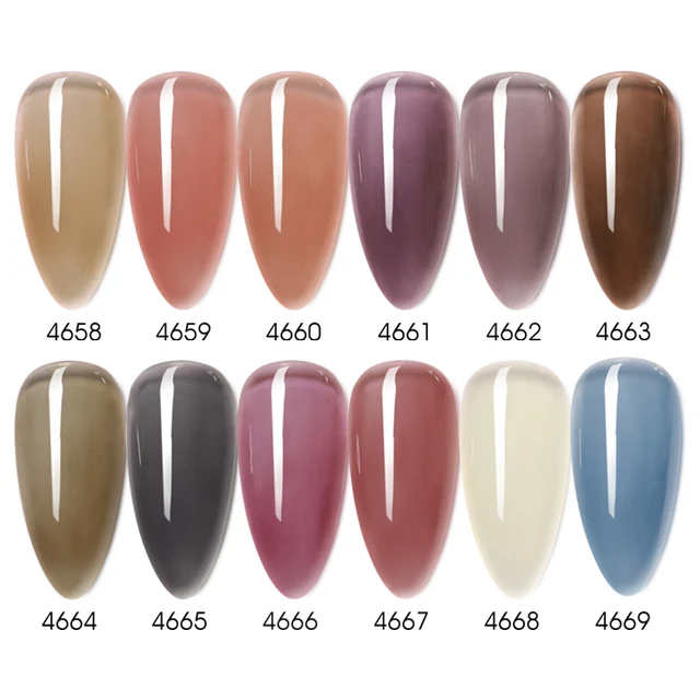 12 Pcs Jelly Amber Gel Nail Polish Summer Ibdgel Translucent Milk Tea Color Soak Off Uv Varnish Mirror Uv Gel Varnish Nail Gel Aliexpress