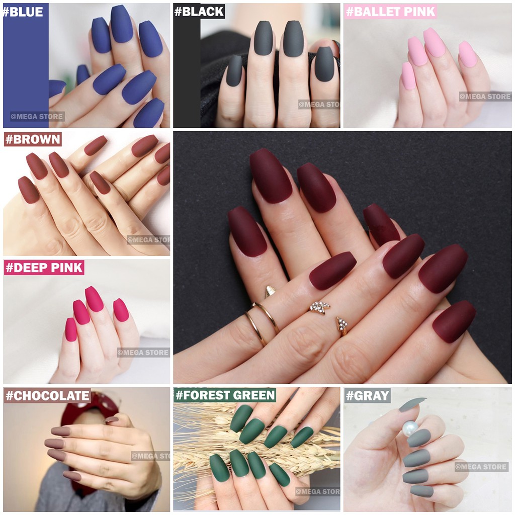 Fake Nails Ballerina Matte White Forest Green Pumpkin Dark Choco Red Wine Promo Shopee Indonesia