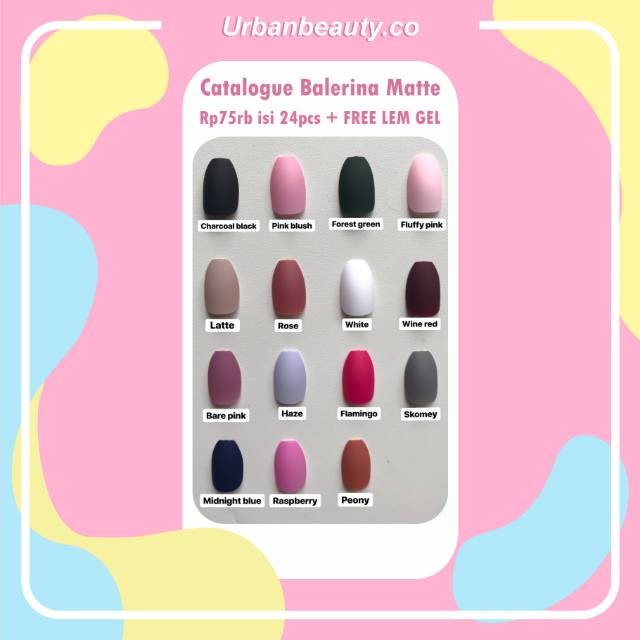Kuku Palsu 24pcs Ballerina Matte 50 Pilihan Warna Lem Gel Isi 12 Fake Nails Nail Art Shopee Indonesia
