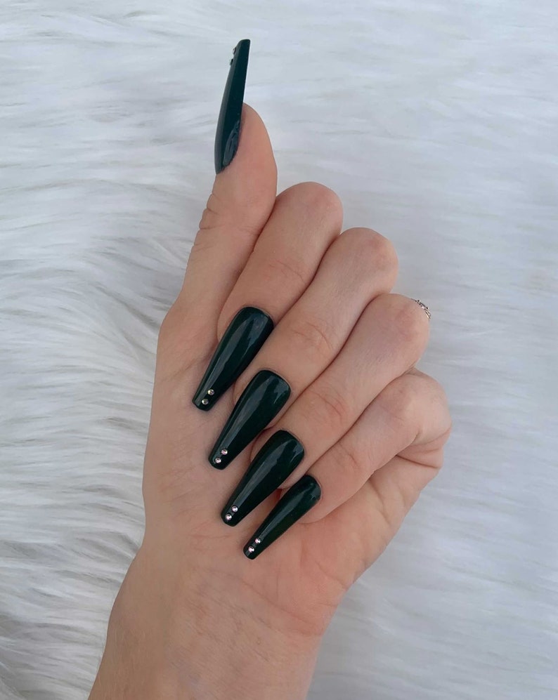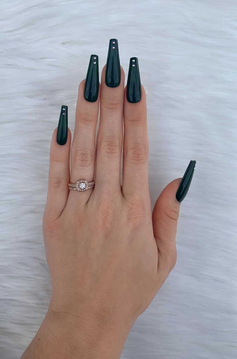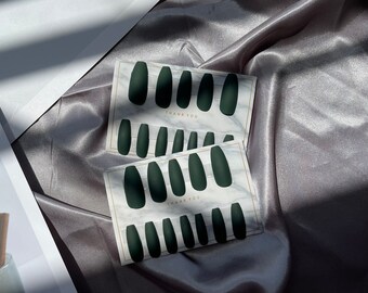 Dark Forest Green Luxury Press On Nails Matte Or Glossy Etsy