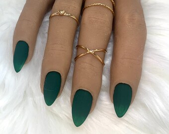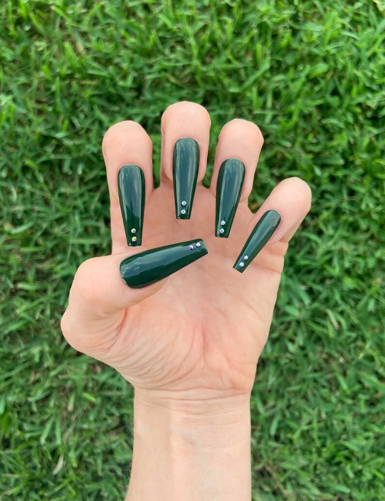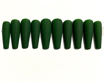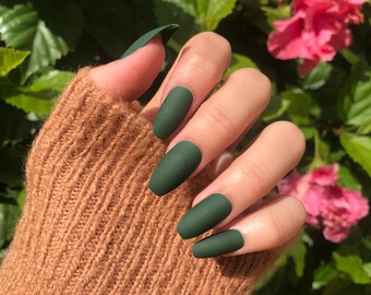 Matte forest green acrylic nails. 48 out of 5 stars 2241. You will receive a set of 10 Custom made-to-order nails glue a file a cuticle stick and a storage box to keep your new be. Shown in XL stiletto shape but available in any shape and size my sets are completely customizable.