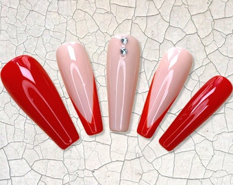 You save 265 10 Size Please select an option. Made with high quality ABS material which is sturdy and durable enough to last about 2-3 weeks. Red french tip long coffin nails French fake nails Red press on nails long coffin nails Red and gold coffin nails Red gold fake nails Price.